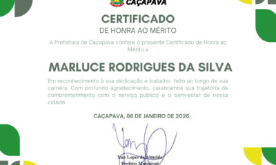 A Prefeitura de Caçapava concedeu, nesta segunda-feira (06), o Certificado de Honra ao Mérito à servidora pública municipal Marluce Rodrigues da Silva, em reconhecimento à sua...